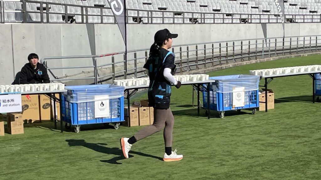 会場は、味の素スタジアムで立派な施設。1時間毎に分かれてスタートするので、コースや場内は混雑せず快適、グランドは走りやすい人工芝、とっても良い大会ですね。グランド内外を4周して10㎞。