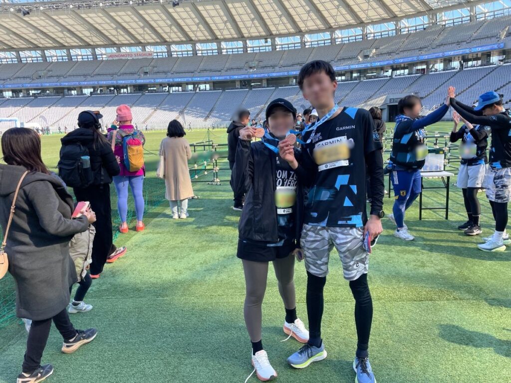 娘は半年前から、5㎞走を週1回練習。10㎞は初めての体験、かなり緊張していたが、あっさり完走!