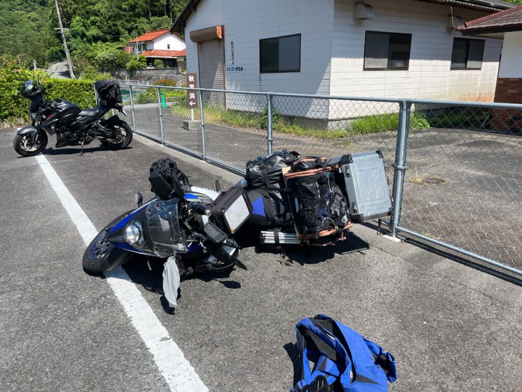 誰も見てないのに、慌ててバイクを起こそうとグイっと力を入れたのがイカンやった。
