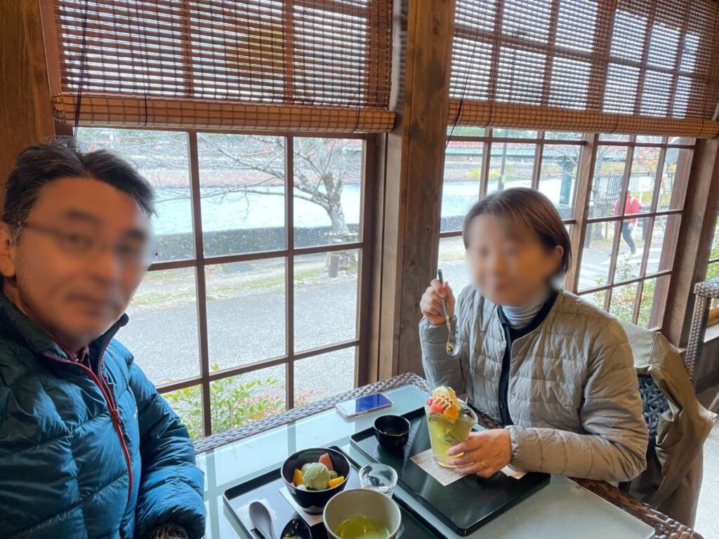 福寿園 宇治茶工房のカフェ、抹茶ではなく玉露と言っていた。サービスドリンクの水出し玉露が最高にうまかった。おかわりしたかったな~~。