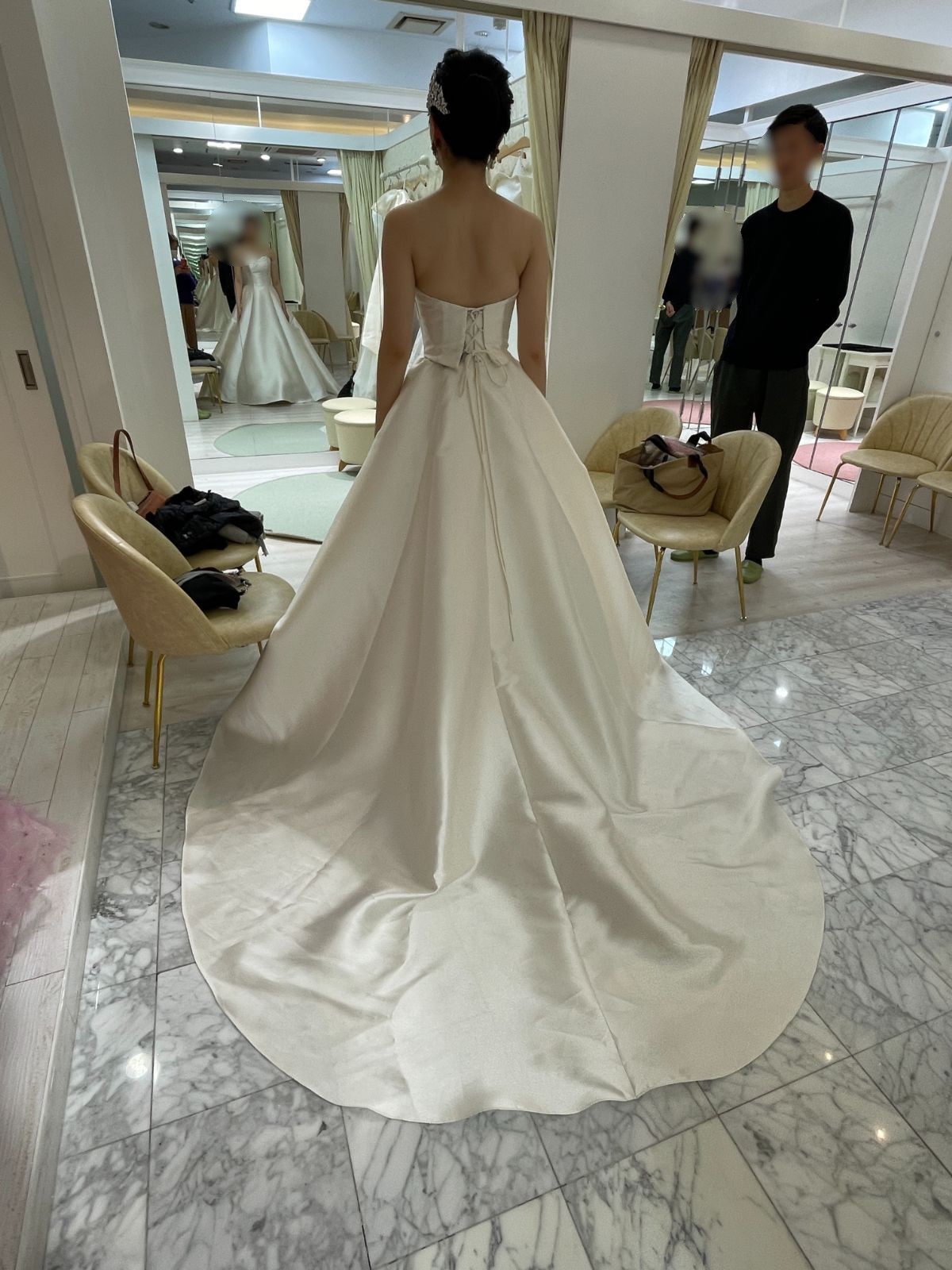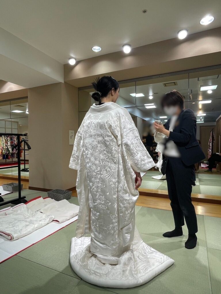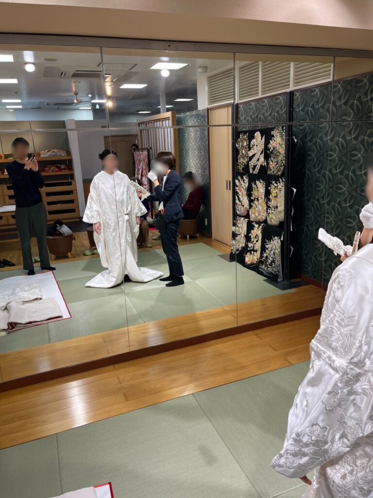 新宿の某所にて、11:00から始まった。まずは和装かららしい。最初の打ち合わせでは試着は3着までと説明があったようだが、5着くらい試着してない?。