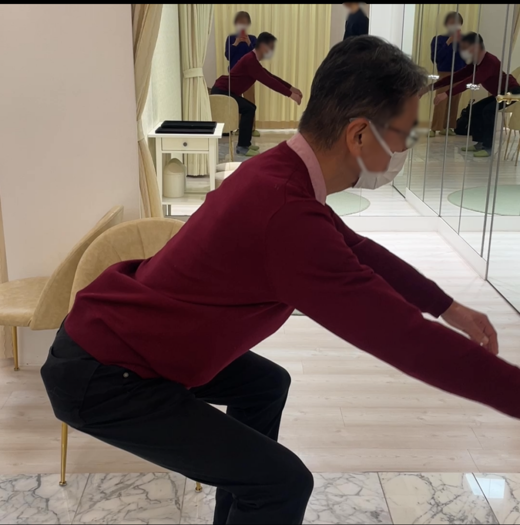 暇を持て余し、ボクは、娘婿さんにスクワットのやり方を習った。三面が鏡で自分の姿がいろいろな角度からよく見え、ちょうど良い。