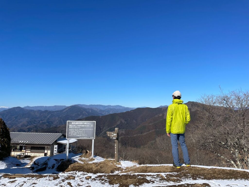 8:00登山開始、9:40陣馬山頂上、10:00景信山へ出発
