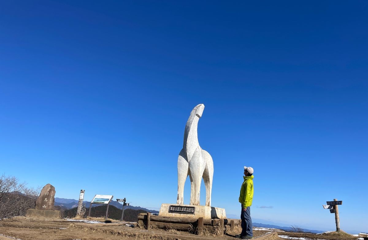 1時間40分で陣馬山頂上へ、今年はウマ年ですね。