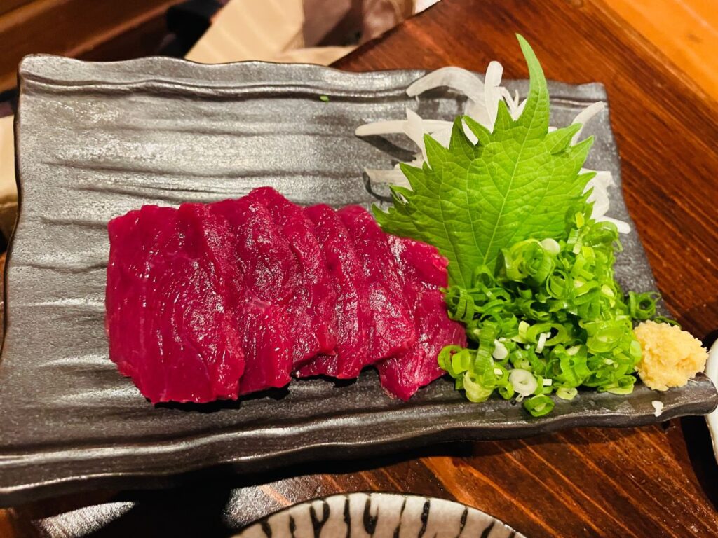 あっさりしていくらでも食いたい馬刺し、北海道釧路は馬肉の一大生産地らしく、馬の放牧場が多い、あそこから来ているんだろうね。