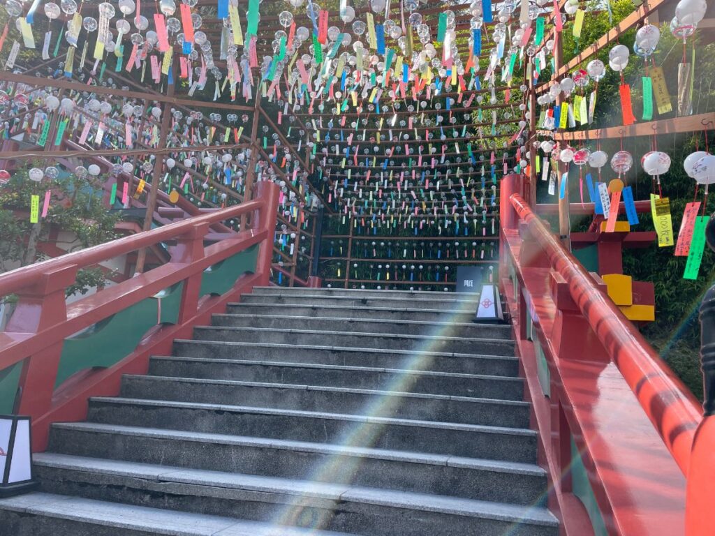 ちょっと寂れた参道の先に現れる赤い舞台の神殿は、美しく圧巻でした。山頂にある奥の院まで登れば、有明海の展望が爽快でした。タイ人が多いと聞いていたけど、外人はほとんど居ない、これがさらに良いね。